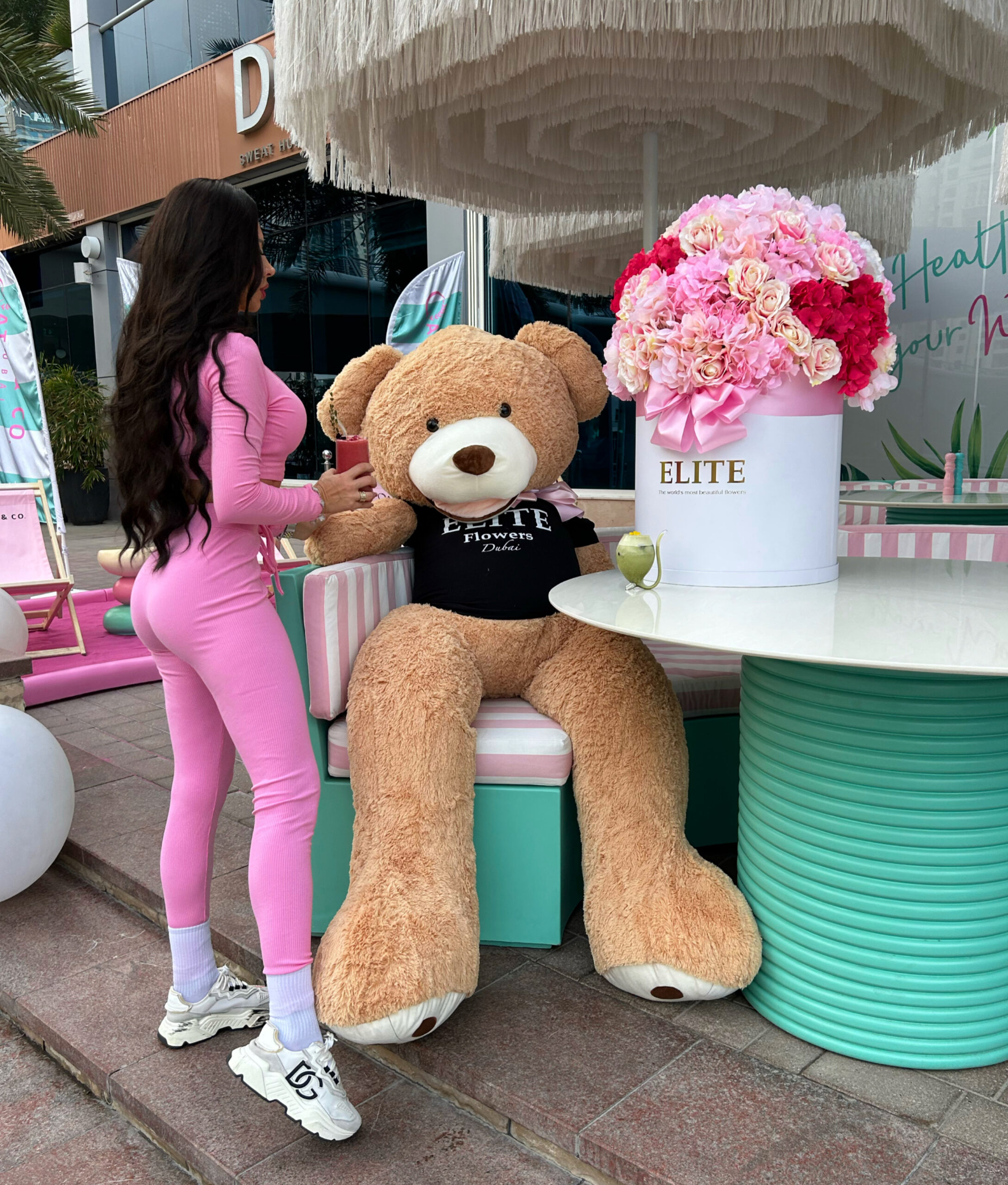 The big romance bundle. Charm your loved ones with our luxurious handmade life size teddy bear perfectly paired with XXL vibrant flower arrangement